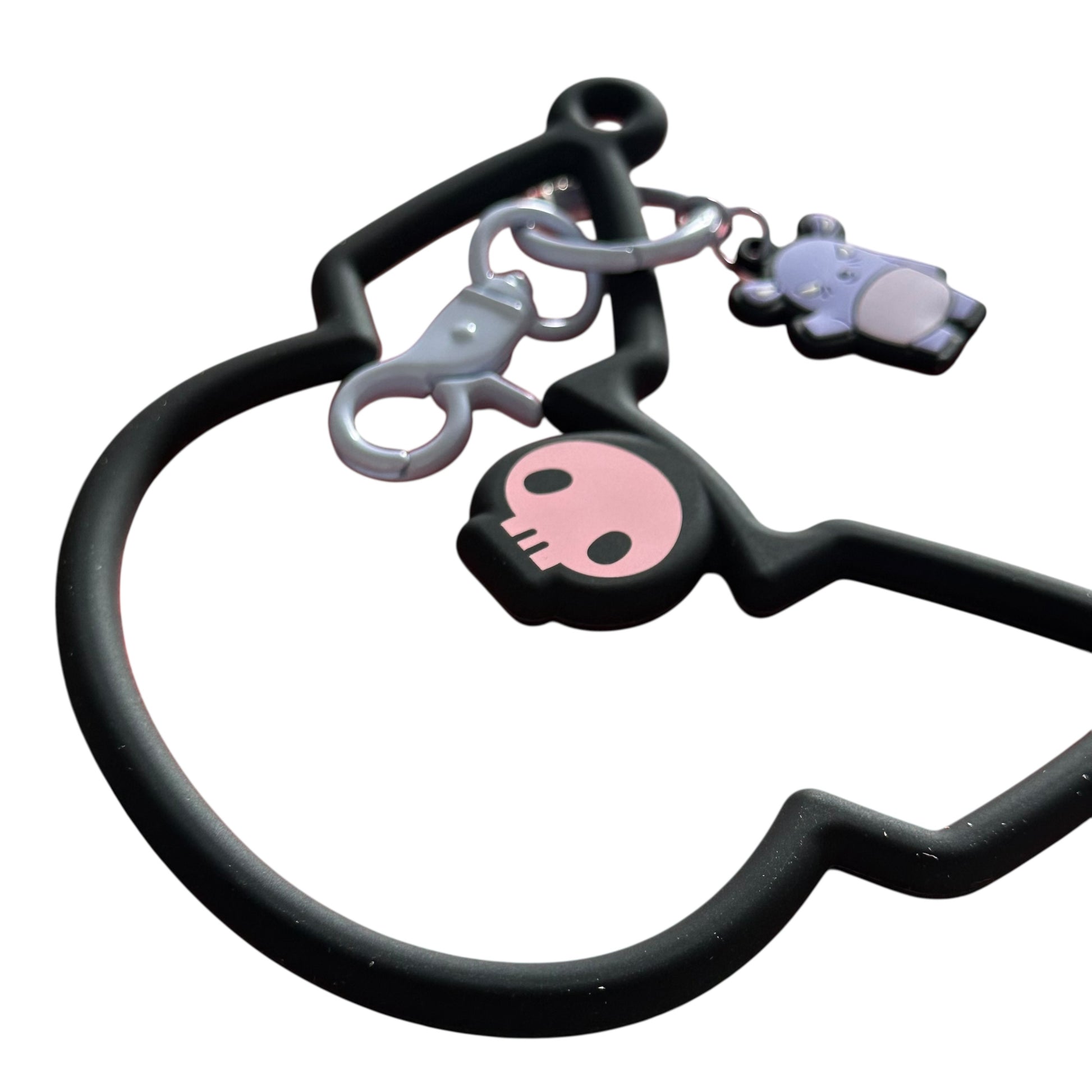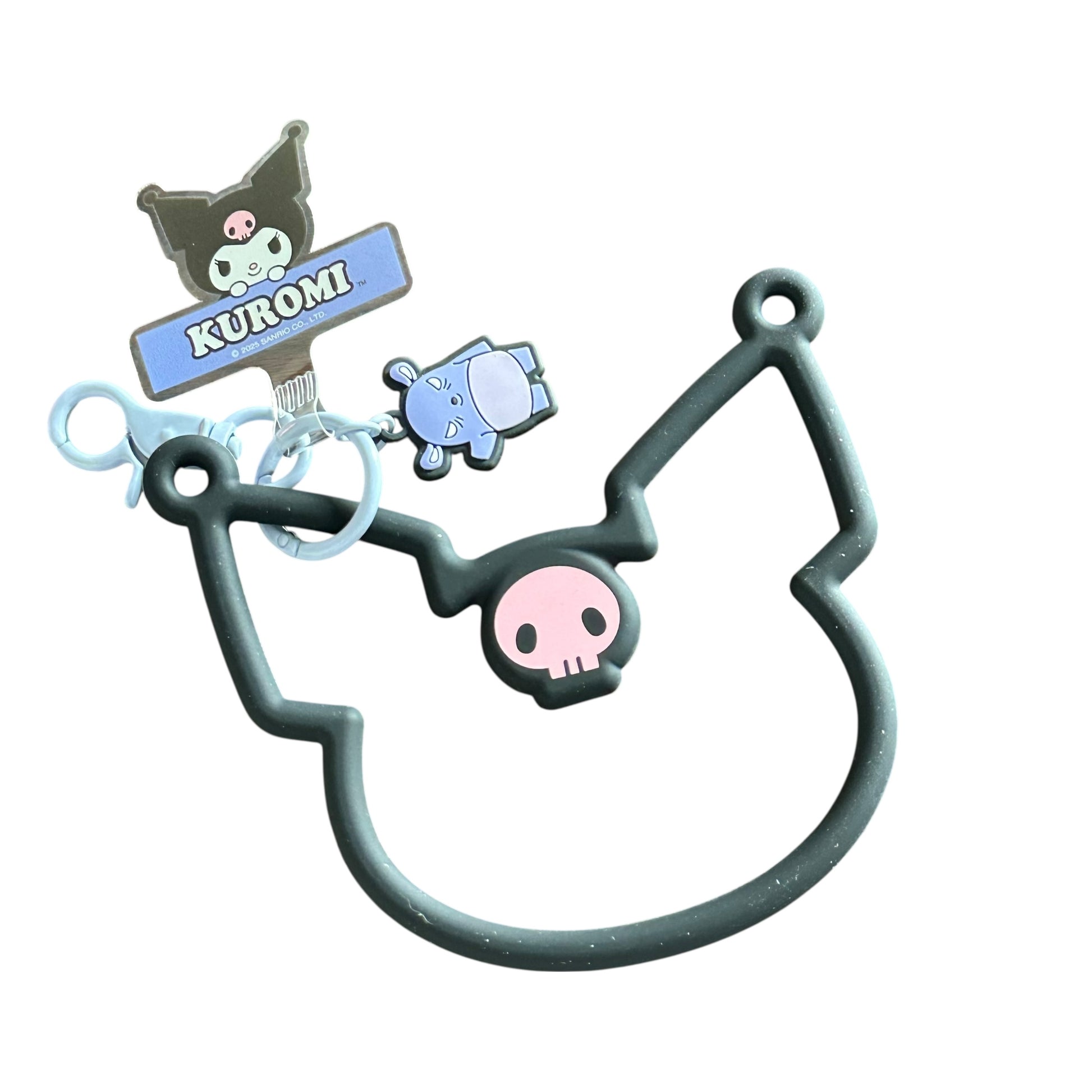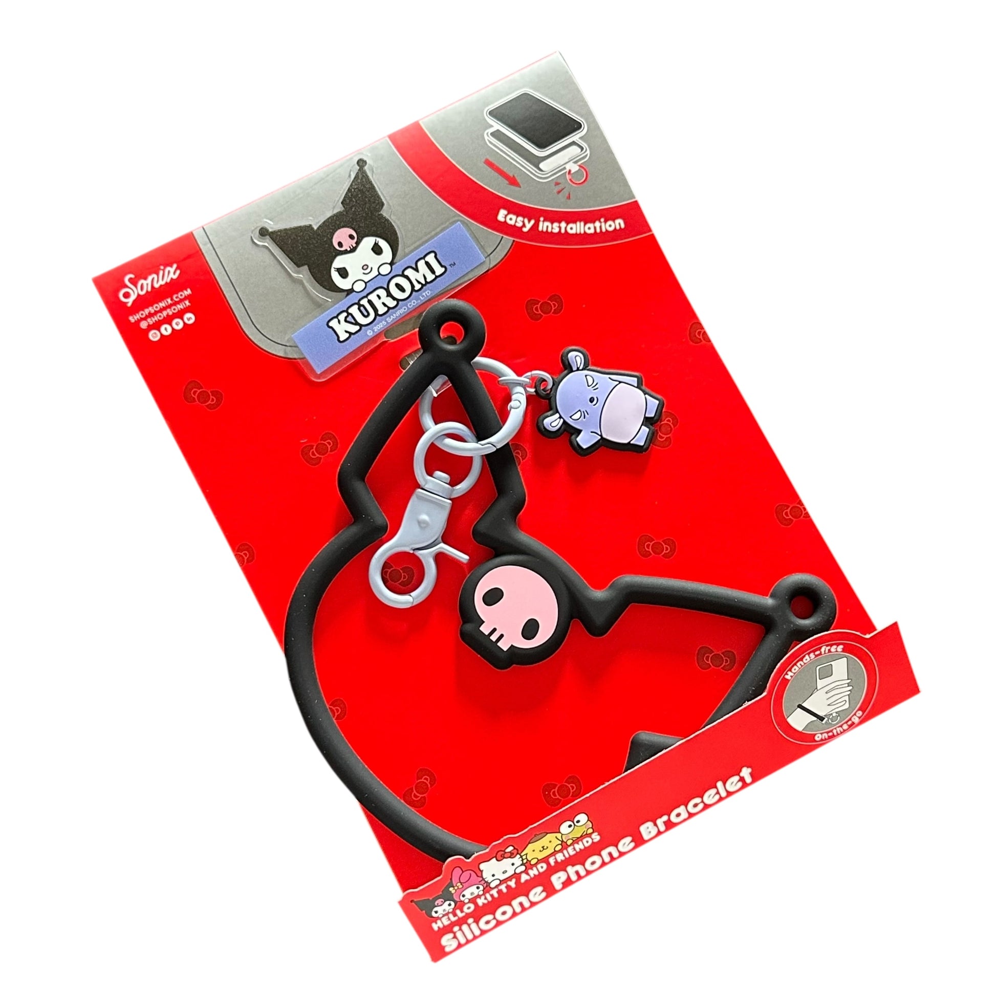 Universal, multi-use smartphone accessory that features a silicone silhouette bracelet of your favorite Sanrio character. Easy to install accessory that attaches through your iPhone’s charging port. Use as a cute character hand strap or wristlet; or easily attach other straps or phone charms to the multi-use ring.